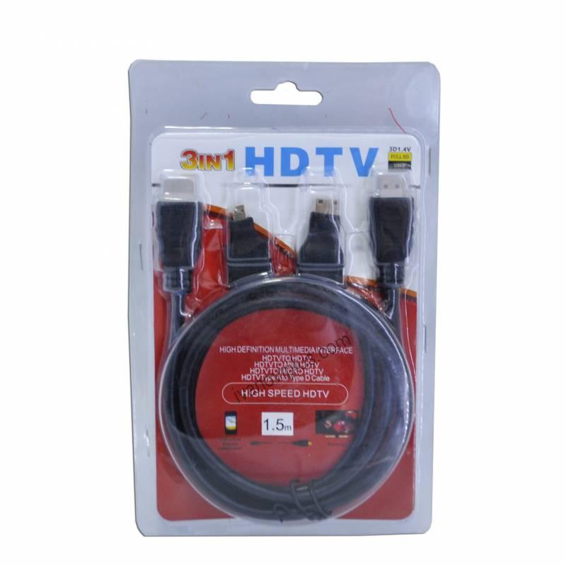 ТВ. аксесоар, кабел HDMI 1,50 м. с 2 преходника- мини HD, микро HD