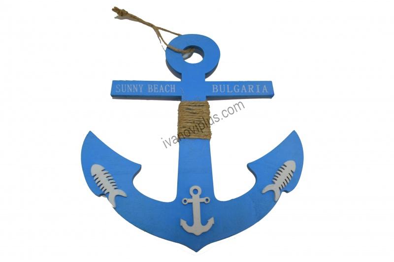 сувенир от дърво, котва с реалистични материали, надписана в горния край Sunny Beach Bulgaria 20x20 см.#
