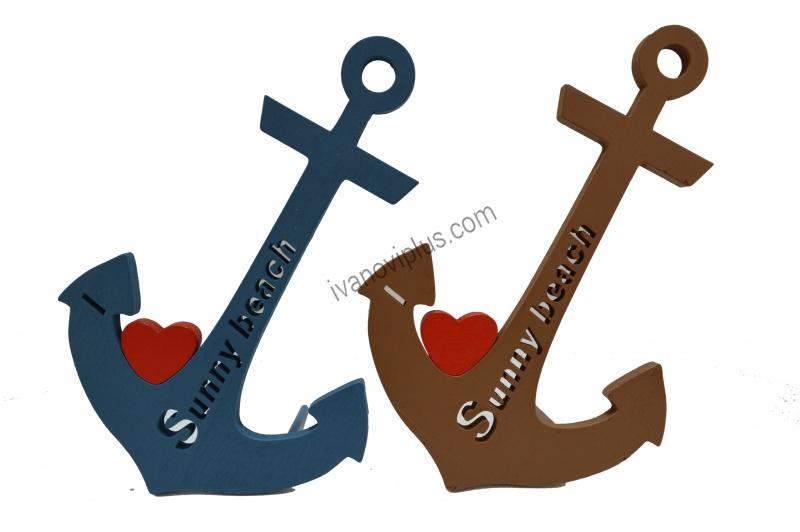 дървен сувенир, котва 20х14 см. I сърце Sunny Beach #