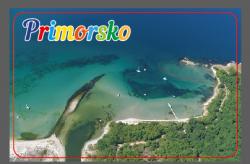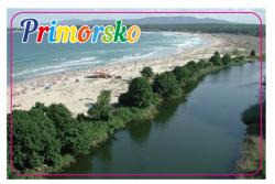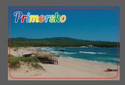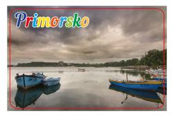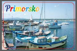 сувенири 5 бр. двуизмерни, магнитни пластики 8,5х5,5см. PRIMORSKO- 5 дизайна на блистер 37,5х 9,5 см.