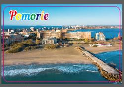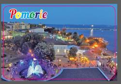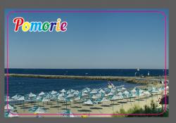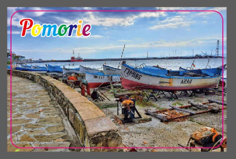 сувенири 5 бр. магнитни пластики 8,5х5,5 см. Pomorie 5 дизайна, двуизмерни на блистер 37,5х 9,5 см. (R4)