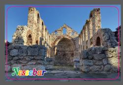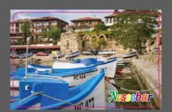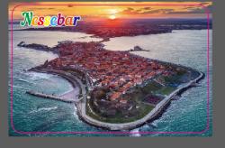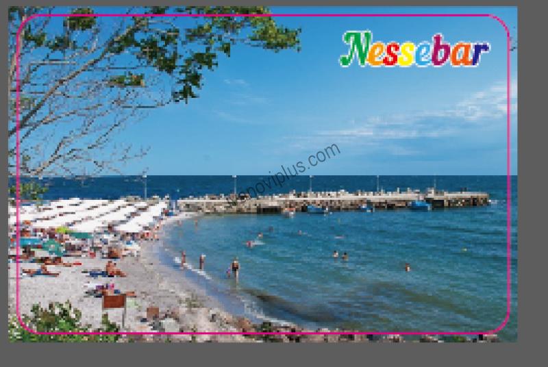 сувенири 5 бр. магнитни пластики 8,5х5,5 см. Nessebar 5 дизайна, двуизмерни на блистер 37,5х 9,5 см. (R4)