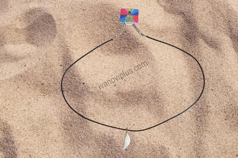 бижутерия, гердан, черен P.U. с метален регулатор, седефено листо (12 бр. в стек, различни размери)(R3)