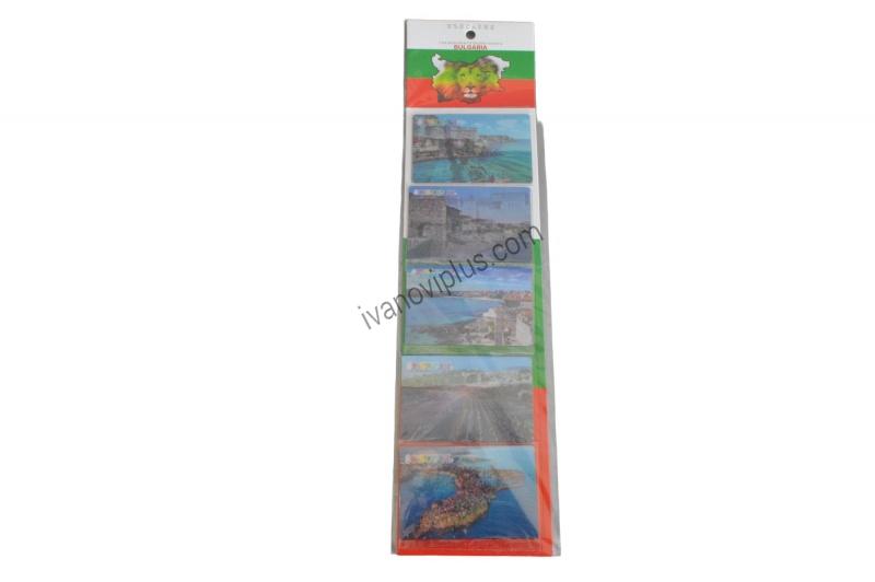 сувенири 5 бр. магнитни пластики 8,5х5,5 см. SOZOPOL 5 дизайна, двуизмерни на блистер 37,5х 9,5 см.