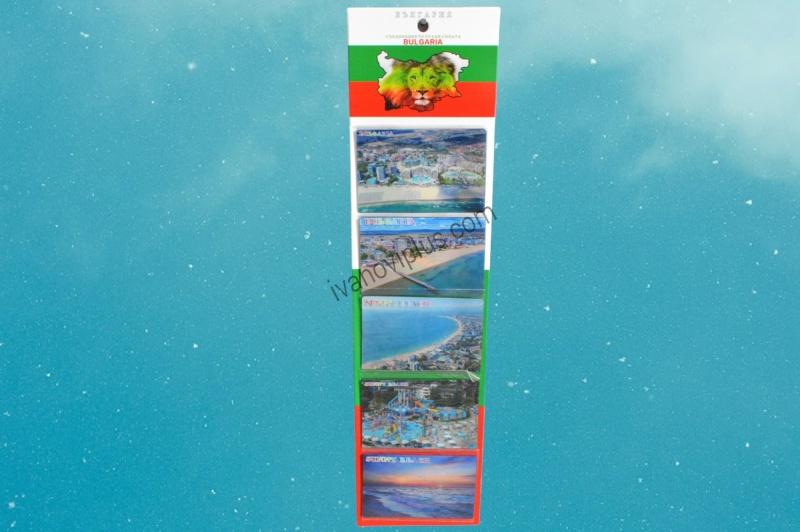 сувенири 5 бр. магнитни пластики 8,5х5,5 см. SUNNY BEACH 5 дизайна, двуизмерни на блистер 37,5х 9,5 см. 1 (R4)